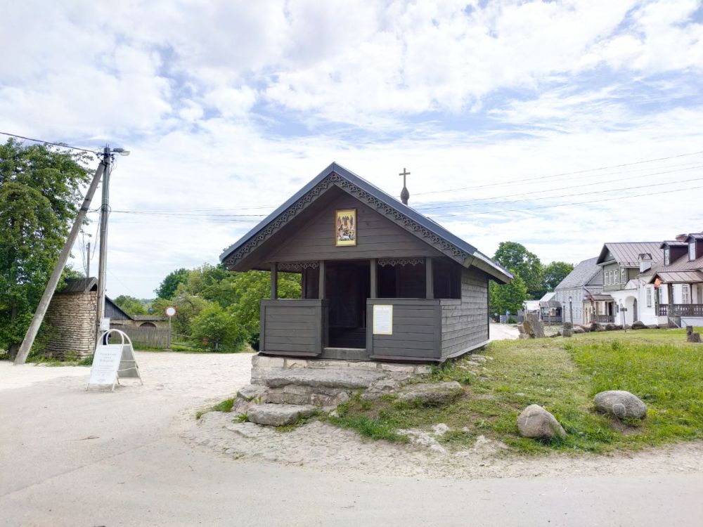 Крохотная двускатная часовня стоит на перекрестке дорог в самом центре Изборска. Выстроена она на урочище Скудельня, где по преданию было братское захоронение воинов, участников отражения нападения ливонцев в 1480 году.