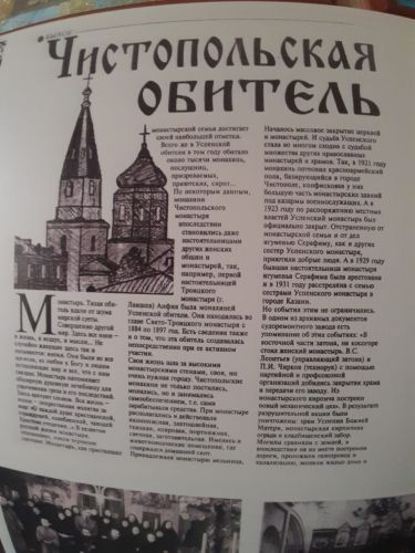 А в августе 2022 года мне удалось вырваться из московской суеты в Чистополь, душа позвала на место бывшего монастыря. Оказывается там сохранилось два больших корпуса монастырских и рядом открыли храм прп. Сергия Радонежского, в домике бывших яслей. В этом храме есть информационный стенд о монастыре, а главное, регентует Галина Васильевна Кузнецова, которая застала нашу Раечку - инокини Ираиду Раисову, училась у нее.