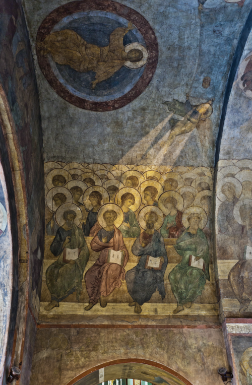 В 1340 году во Владимирском соборе были проведены ремонтные работы по кровле. В 1408 году "повелением великого князя Василия Дмитриевича собор был расписан, а мастеры Данило Иконник да Ондрей Рублев".